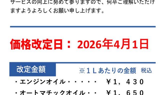 価格改定のお知らせ